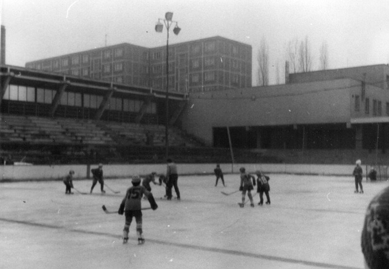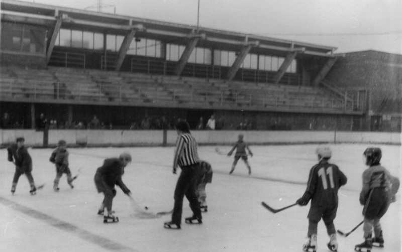 Kluziště z „Olšin“ se přeneslo na fotbalové hřiště. Uprostřed se vybudovala jílová hráz, napustila se voda a čekalo se na mráz. Na polovině plochy se stavělo hokejové hřiště s 30 cm vysokými mantinely z fošen, které byly vyztuženy prkny a podpírány dřevěnými klíny.